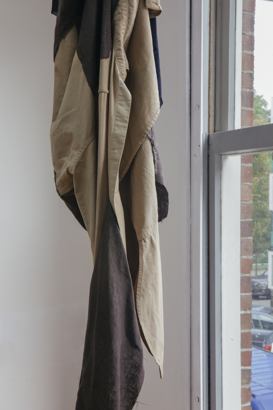 Ingrid Blix, 2019. Drowned dresses/and dreams & eczema ~ Doublesided Polyester Fabric, Cotton Shirt, Coffee, Thread